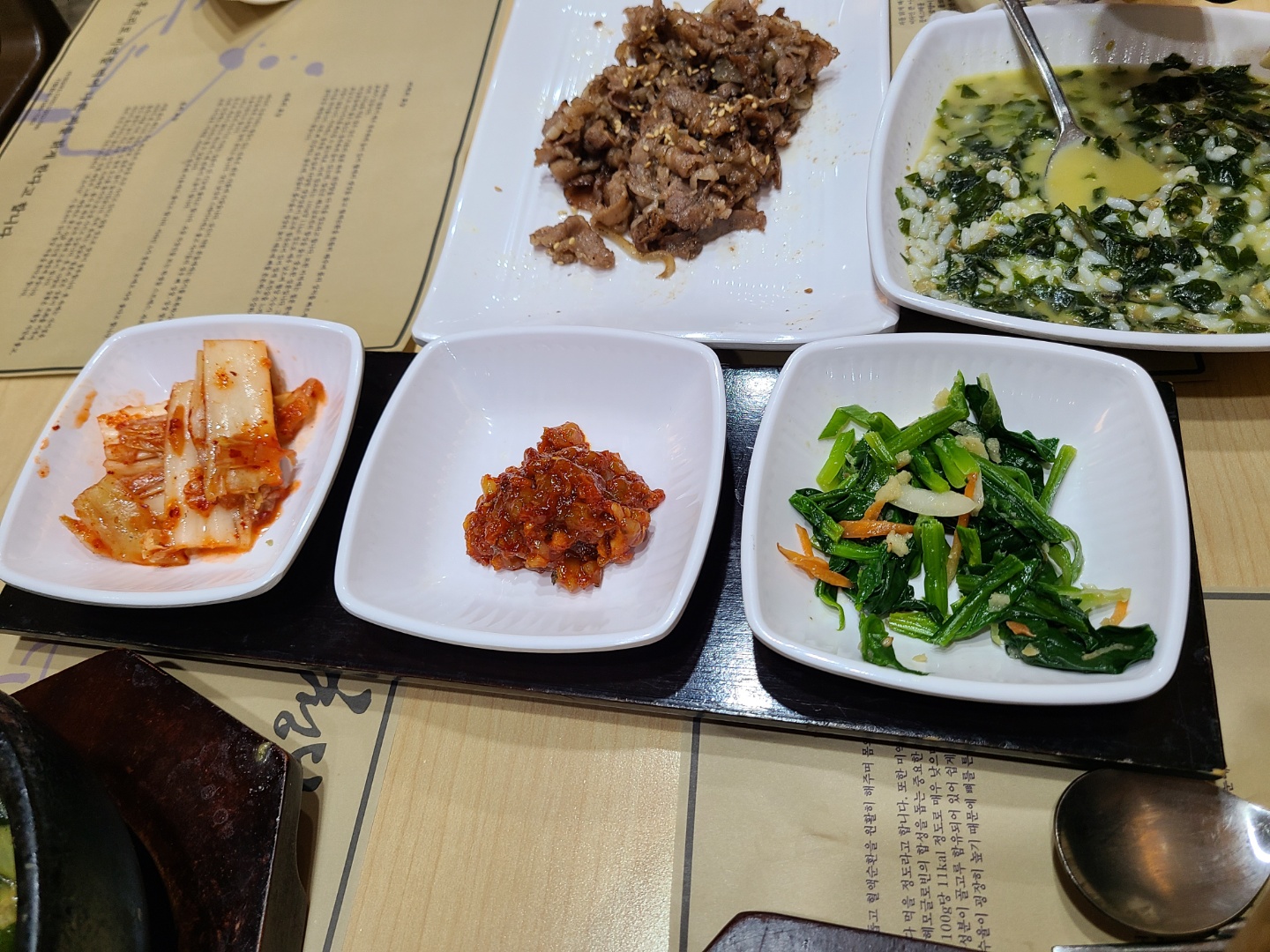 밑반찬도 김치랑 시금치무침, 젓갈이 나왔는데 미역국에 밥 말아서 위에 반찬을 살짝 얹어서 입안에 넣으면 너무 맛이 좋아서 막 감탄사가 절로 나오는 그런 맛이었습니다.
