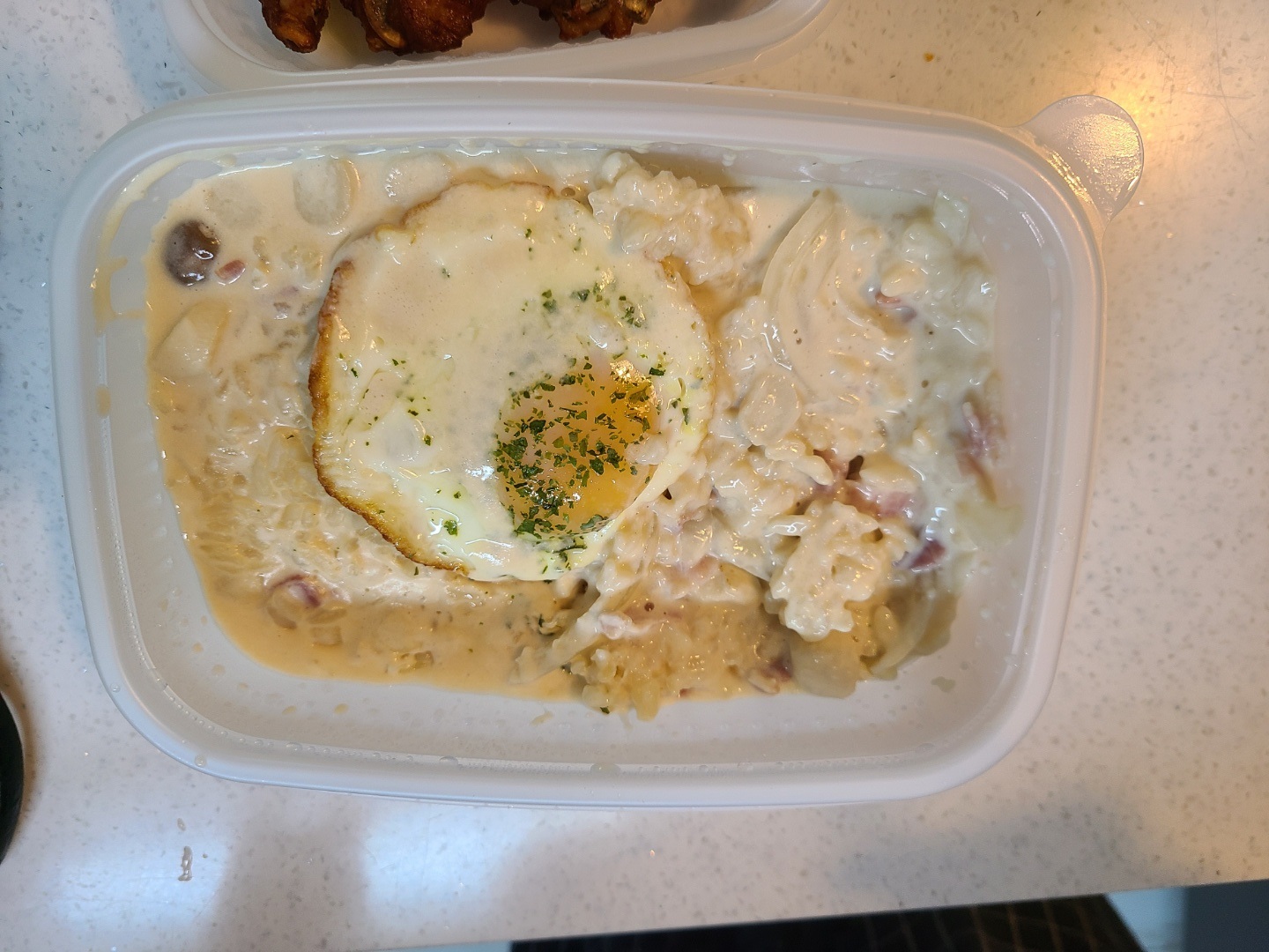 이건 베이컨 크림리조또입니다. 너무 면만 먹이면 안 될 거 같아서 적당히 밥도 같이 먹 일생각으로 시켜 보았습니다. 그런데 애들은 역시나 면을 좋아해서 그런지 맛은 좋은데 리조또 보다는 면만 먹어서 리조또는 저희 부부가 다 먹었습니다.
