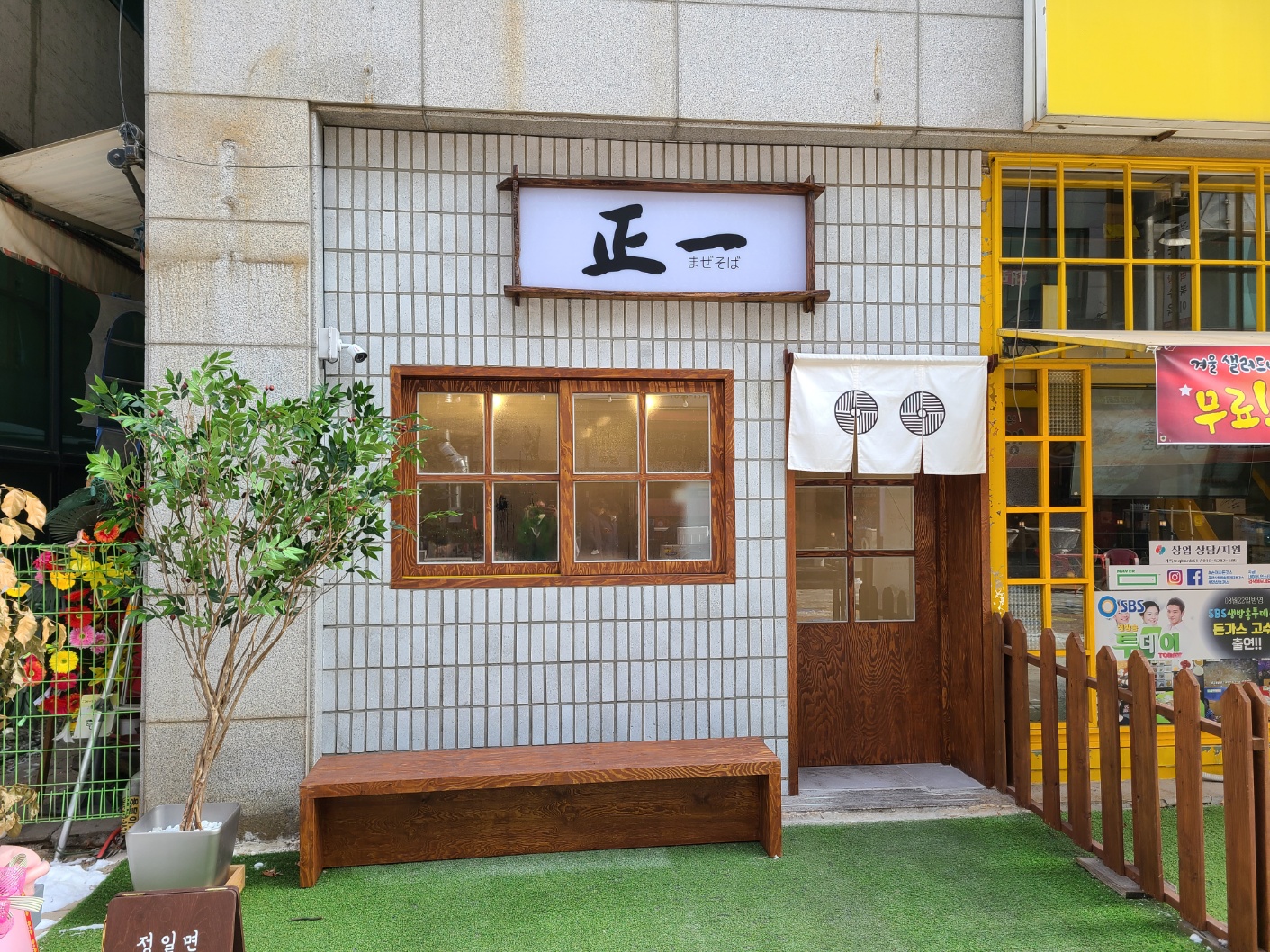 정면에서 보는 정일면 가게 입구, 바로옆에 노란색 간판 돈까스집을 찾으시면 쉽게 찾을수 있습니다.